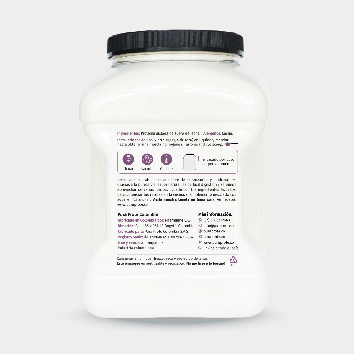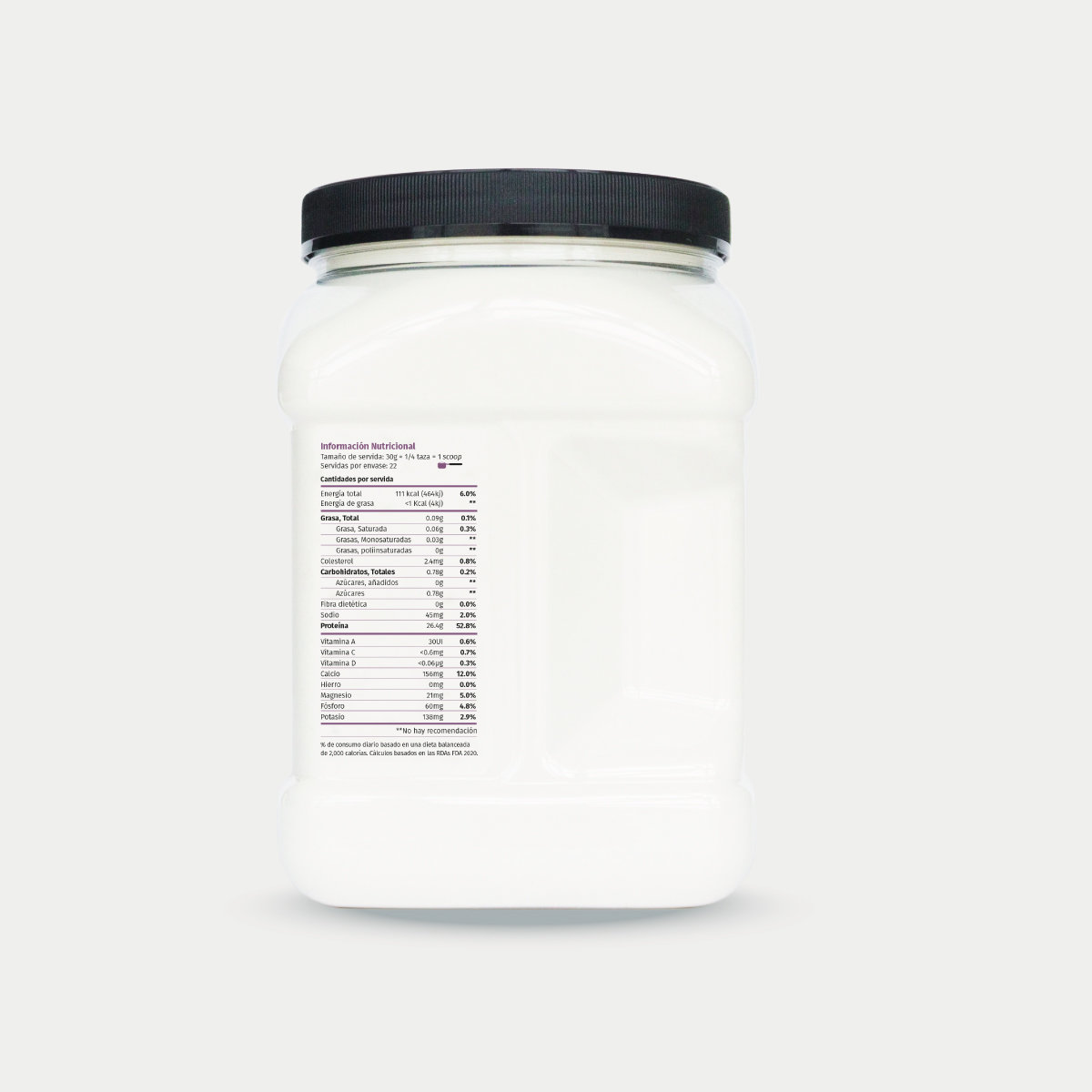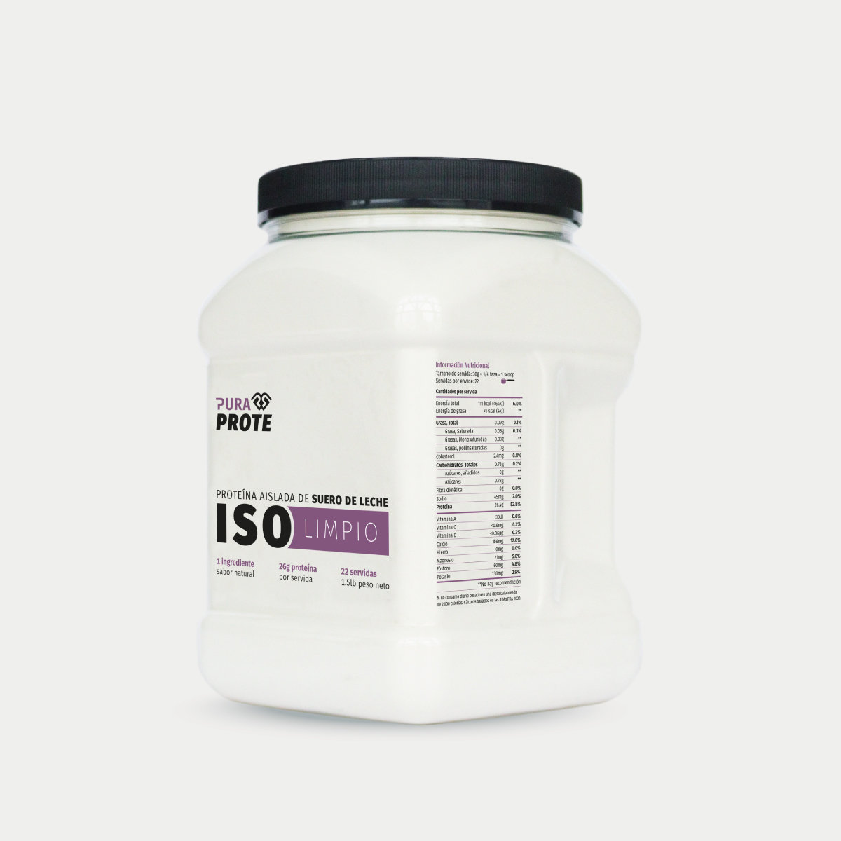 Una servida de 30g de Whey ISO limpio aporta: 26.4g de prote | 0.7g de carbos | 0g de grasa | 111kcal