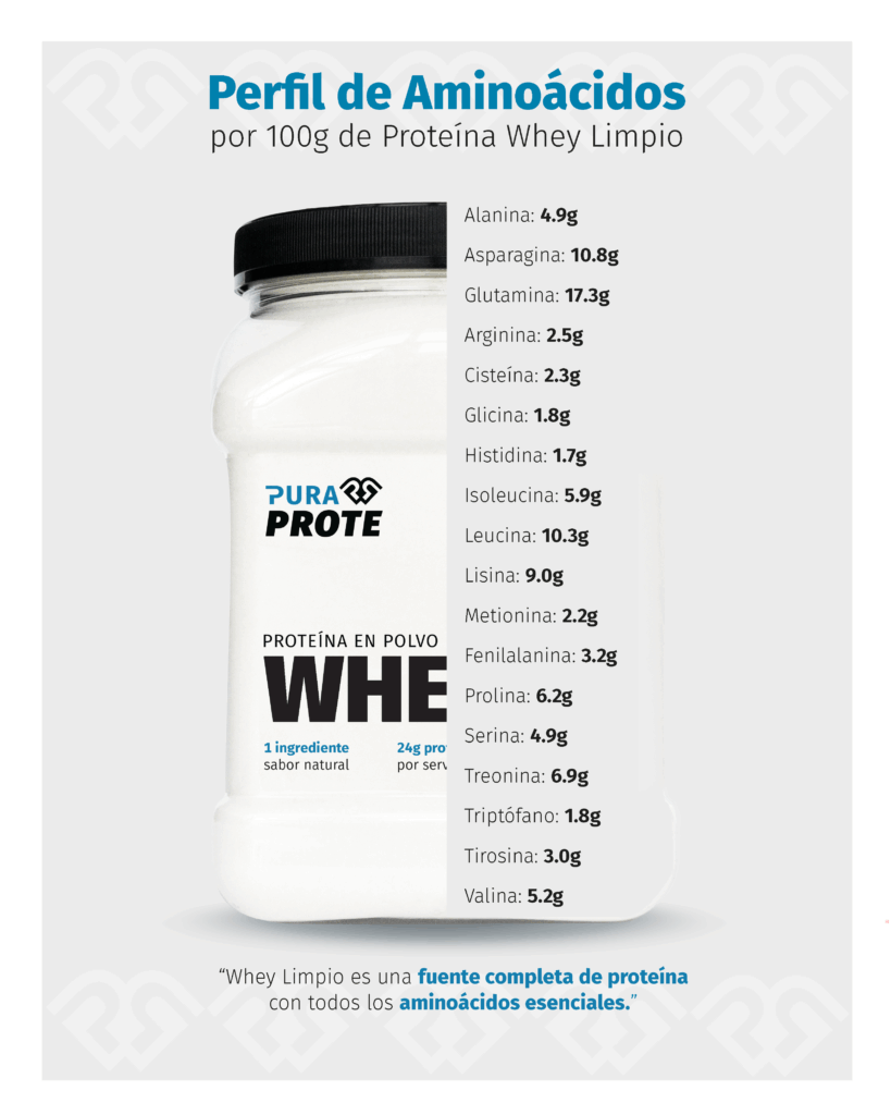 Perfil de aminoácidos por 100g de proteína – Whey Limpio